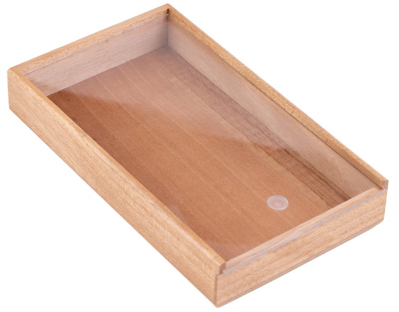 Looking for a low cost solution for holding up to 5 cigars? This price point box is crafted of wood and lined with Spanish Cedar and has a sliding see-through top. Measures: 7 3/4” L x 4 1/2” W x 1 1/4” H5 Cigar Promotional Box w/ Sliding Clear Top