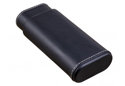 This rich black leather case has a bold white contrast stitching that runs around its edges. The interior of the case is lined with Spanish Cedar on both ends and accommodates up to three 52-ring or two 64-ring gauge cigars. The sliding action of this case allows for better fitment flexibly for different length cigars.