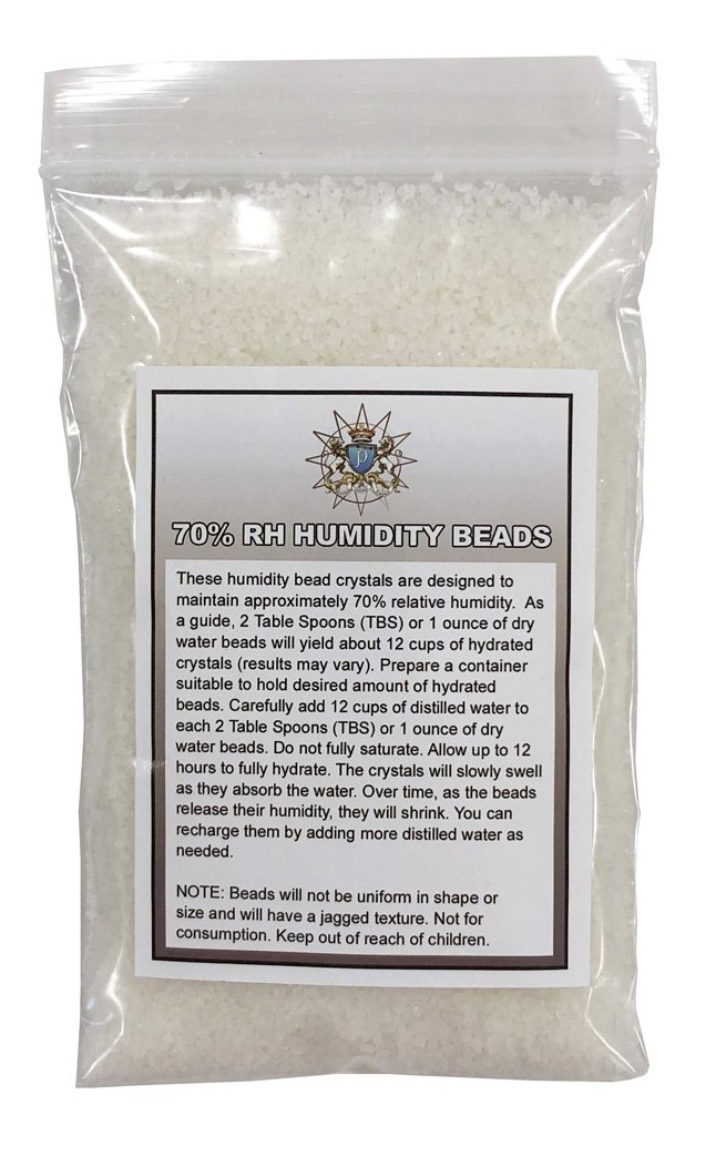 Choose from a 1/4 lb. or 1/2 lb. or 1 lb. bag of rechargeable and reusable humidity crystal beads. These humidity crystals are designed to maintain approximately 70% relative humidity. As a guide 2 tablespoons or 1 ounce of dry water beads will yield about 12 cups of hydrated crystals. Results may vary. Prepare a container suitable to hold desired amount of hydrated beads and carefully add 12 cups of distilled water to each 2 tablespoons or 1 ounce of dry water beads. Do not fully saturate. Allow up to 12 hours to fully hydrate. The crystals will slowly swell as they absorb water. Over time as the beads release their humidity, they will shrink. You can re-charge them by adding more distilled water as needed. A perfect way to bring in additional moisture to your cigars!Easy to Use