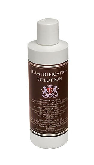 Not only does it keep your humidity levels in check, it also prevents the formation of bacteria and mold growth within your humidor that can ruin your cigars. Each 8 oz. bottle features a convenient flip top spout and lasts for approximately 9-12 months in an average humidor with a capacity of 75-100 sticks. Works effectively in all humidification systems and is highly recommended. When purchasing a new humidor, a bottle of this cigar solution is a must.