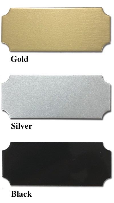 Add a customized name plate to your order for that personalized touch! Select from gold, silver or black color options. Each name plate has an adhesive back for quick and easy application. Gold and Silver plates engrave to Black text. Black plates engrave to Silver text.Laser Engraved Name Plate