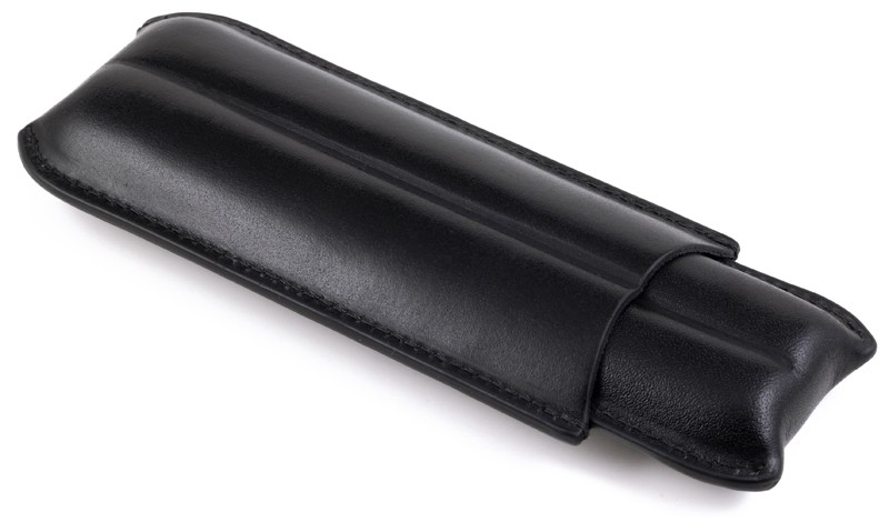This cigar case is being sold at a discounted price due to being a showroom unit. See Pictures. For further information on this unit please call us at 954-975-2499. SD units are sold as is.This sleek cigar case is designed for style and convenience. Its crafted from classic black bonded leather and holds two cigars up to 7.5 inches in length and a 52-ring gauge. The sleeve-style case is easy to open and close, offering quick access whenever needed and keeps your cigars safe and secure while on the go. Lightweight and compact, it slips easily into pockets or bags, making it ideal for travel. Perfect for any cigar enthusiast, this case combines elegance and function. Overall Dimensions: 7.75" L x 3" W x 1.2" thick.