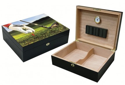 Brilliant Vivid 3D Golf Scene Humidor with Satin Black Finish
