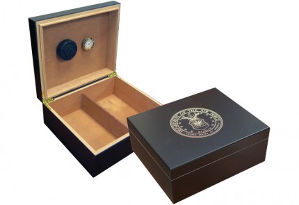 This black US Airforce humidor stores between 25-50 cigars and is lined with spanish cedar. Includes an adjustable divider, humidifier and hygrometer. Show off this handsome humidor custom engraved with the United States Airforce emblem. A great humidor at an unbelievable price!Holds 25-50 cigars