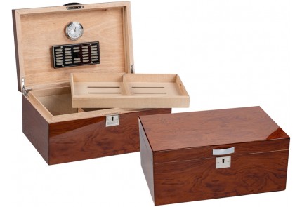 250 Count Brazilian Rosewood Humidor w/ Twin Trays & Silver Digital Hygrometer