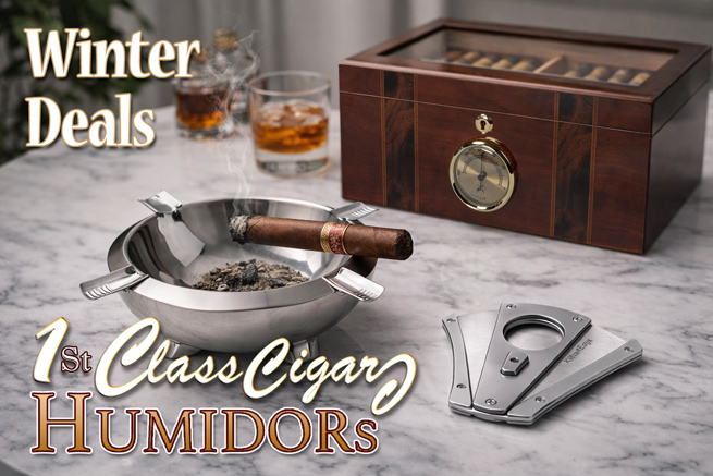 Store 25-50 Cigars with this Starter Humidor. Includes Humidifier, Hygrometer & Divider. -